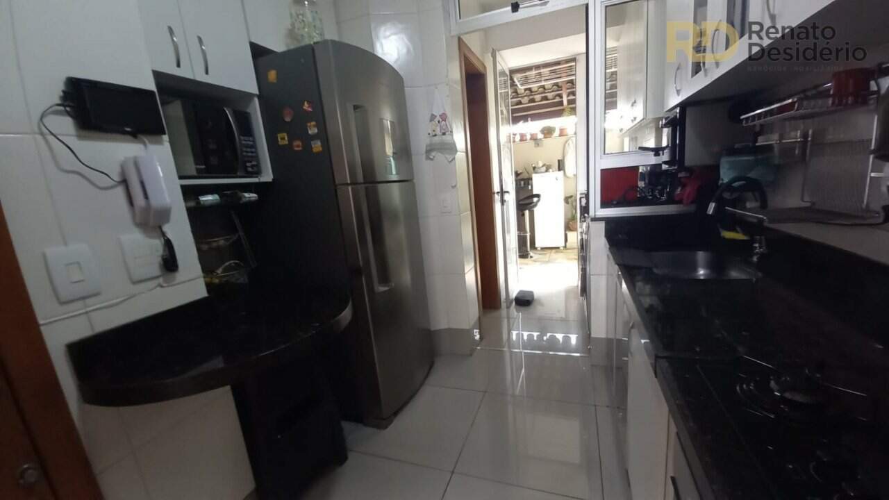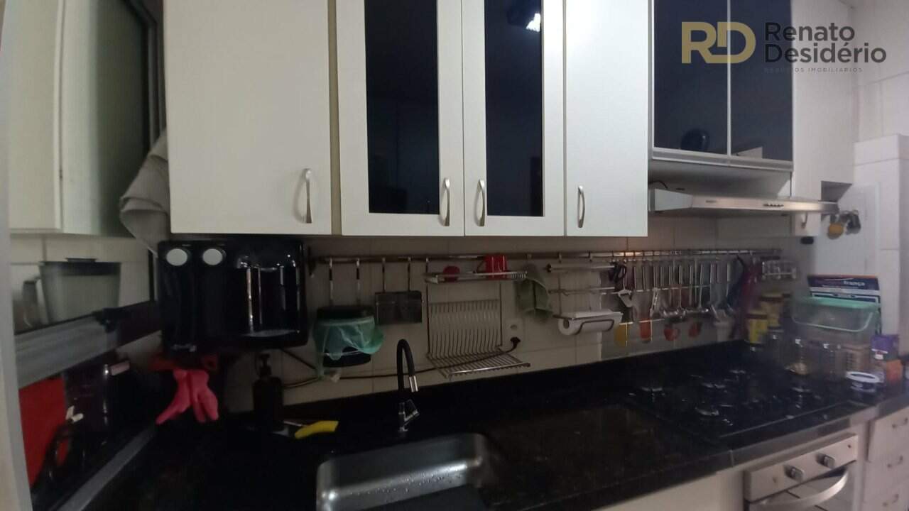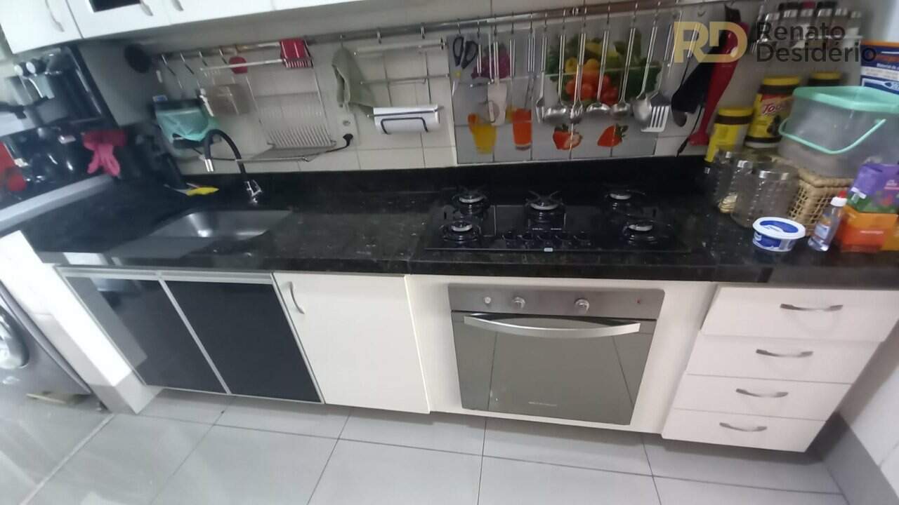 Sala ampla para 2 ambientes, 3 quartos, sendo 2 com armários e 1 suíte com armário e box, cozinha com armários, área de serviço com armários, área privativa com churrasqueira, bancadas, e armários.