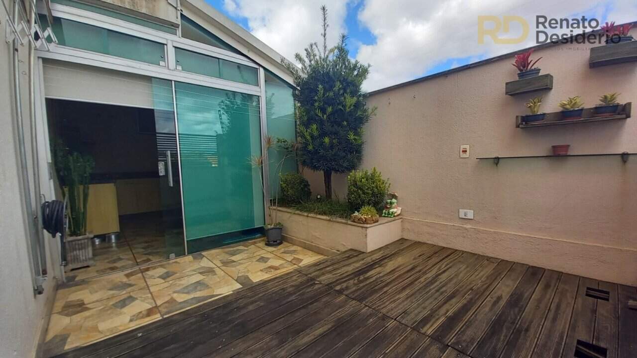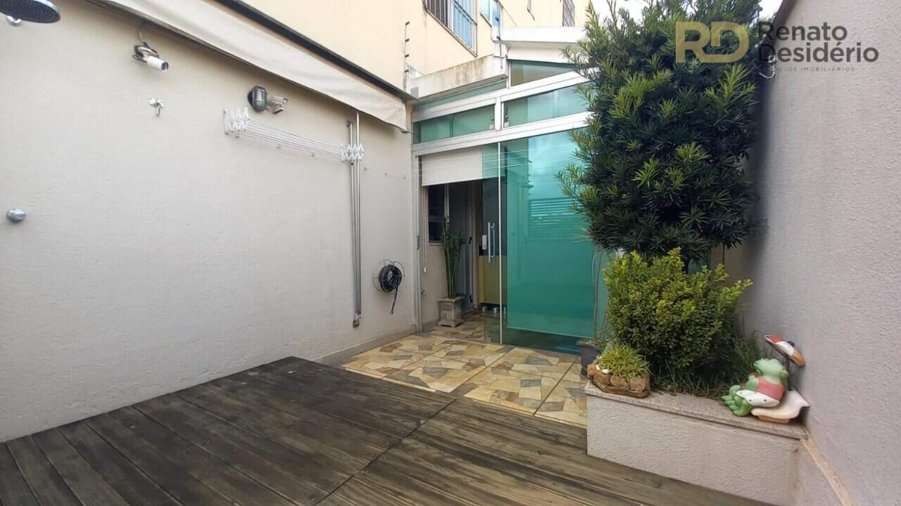 Área coberta com blindex, espaço aberto sem cobertura, com jardim.